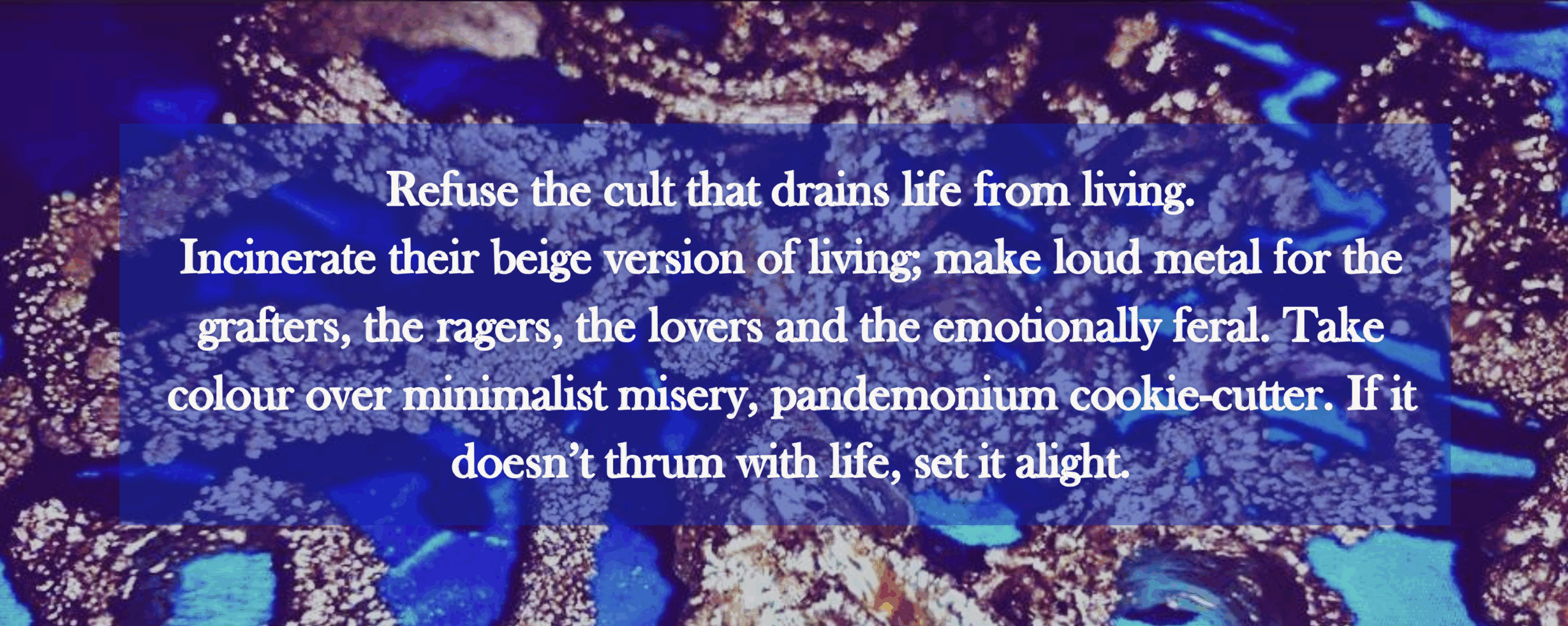 Blunt opinions, bile where it belongs, not satire for comfort but polemic with teeth. Cultural autopsies, rage pieces, overheard nonsense and personal rants. Gallows humour stitched with theory, sharpened by sarcasm, ridicule and wit. I drag culture into the light and sometimes drag myself with it. Hybrid nonfiction that blends philosophical argument, mythic commentary, autobiographical memory and a sermon-like literary voice. Expect depth, not fluff; indictment, not comedy.